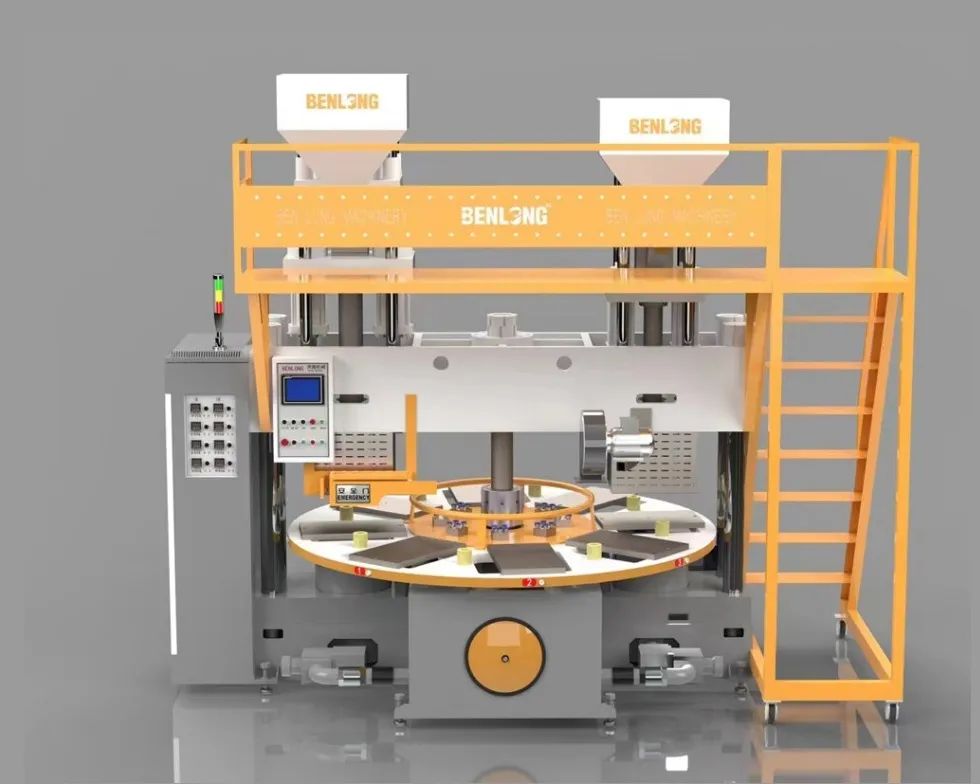 圓盤立體布局:采用圓盤狀旋轉(zhuǎn)工作臺(tái),可同時(shí)安裝多組模具,通過工位循環(huán)(上料、注射、冷卻、脫模)實(shí)現(xiàn)連續(xù)生產(chǎn),大幅提升單位時(shí)間產(chǎn)能,且立體結(jié)構(gòu)節(jié)省地面空間,適合集約化廠房規(guī)劃。
